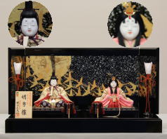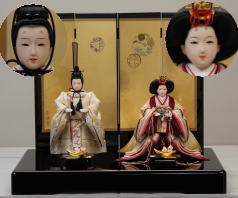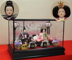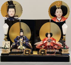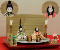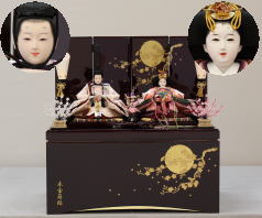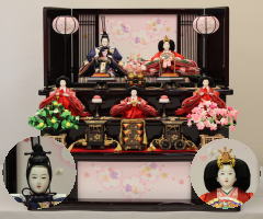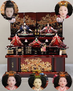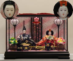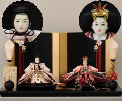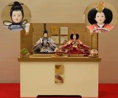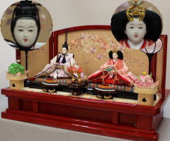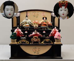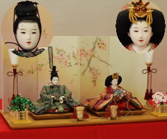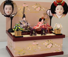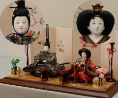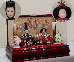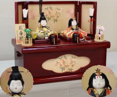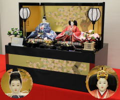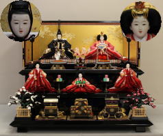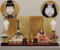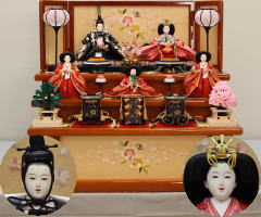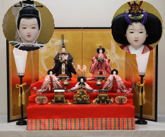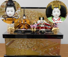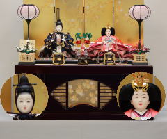 *上段のワイン塗収納飾りで組替えた親王揃いと同じ親王揃いです。