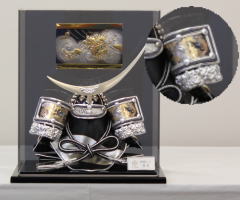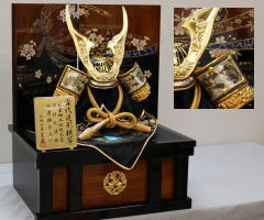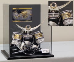 龍の彫金吹返し兜の収納飾りです。